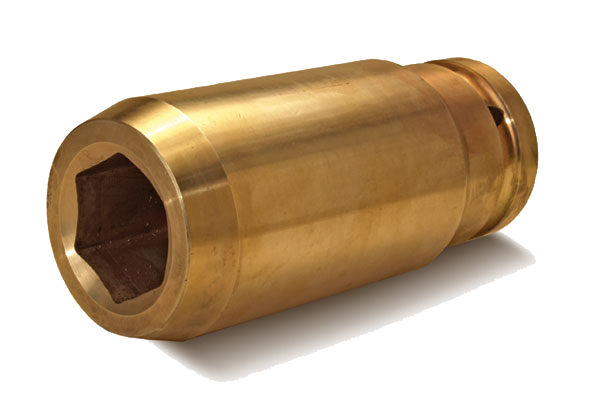 1-5/8-inch bronze hex, spark resistant, tank car socket for 1-inch square drives. Bolt clearance depth of 4-inches. T-handle wrench recommended when using sockets on tank car domes. DO NOT use impact wrenches with bronze sockets. Use hand wrench only. Limit torque (non-impacting) to 500 foot/ pounds. Product of Aldon® Company.
