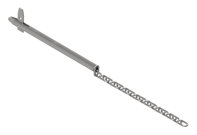 Salco Products (SP112CS) 1 x 12-Inch (1″x12″) Carbon Steel Seal Pin Assembly features a carbon steel seal pin that is 1-inch thick with 12-inches of usable length, and an overall length of 15-1/2-inches. The toggle (flapper) holds the pin in place, and features a 3/8-inch seal hole. Welded to the end of the pin is 17 links of 1/4-inch, carbon steel, chain with a length of 20-inches.