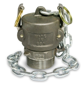 Salco Products (K20IUMP1A) 2-Inch Thread On Ductile Iron Top Fitting Assembly, Black Nitrile Gasket fits a 2-inch female NPT. Features a 2-inch cam groove, ductile iron, adapter with a 2-inch male NPT. Includes a, zinc plated carbon steel, S-hook that’s 3/16-inch by 2-inches, and a 3/16-inch, zinc plated carbon steel, chain link with 4 links. The 2-inch cammed dust cap is made out of ductile iron with stainless steel straight arms. The dust cap includes a, zinc plated carbon steel, 1/4-inch S-hook, and a 3/16-inch, zinc plated carbon steel, chain link with 21 links. Cap gasket material is Black Nitrile.