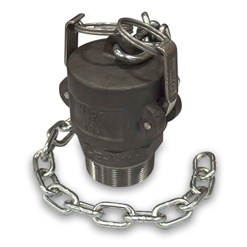 Salco Products (K20IUMP12A) 2-Inch Thread On Ductile Iron Top Fitting Assembly, Black Viton® GF-600S Gasket fits a 2-inch female NPT. Features a 2-inch cam groove, ductile iron, adapter with a 2-inch male NPT. Includes a, zinc plated carbon steel, S-hook that’s 3/16-inch by 2-inches, and a 3/16-inch, zinc plated carbon steel, chain link with 4 links. The 2-inch cammed dust cap is made out of ductile iron with stainless steel straight arms. The dust cap includes a, zinc plated carbon steel, 1/4-inch S-hook, and a 3/16-inch, zinc plated carbon steel, chain link with 21 links. Cap gasket material is Black Viton® GF-600S.
