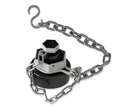 Cap assembly available with: Cable, Stainless Steel Chain, Carbon Steel Chain.