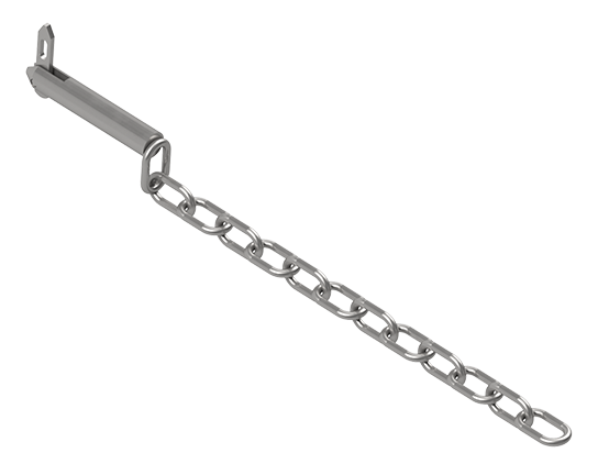 Salco Products (SP62525CS) 5/8 x 2-1/2-Inch (5/8″x2 1/2″) Carbon Steel Seal Pin Assembly features a carbon steel seal pin that is 5/8-inch thick with 2-1/2-inches of usable length, and an overall length of 3-17/32-inches. The toggle (flapper) holds the pin in place, and features an elongated 3/16-inch seal hole. Welded to the end of the pin is 13 links of 3/16-inch, carbon steel, chain with a length of 12-inches.