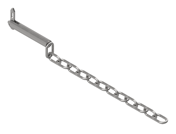 Salco Products (SP6253CS) 5/8 x 3-Inch (5/8″x3″) Carbon Steel Seal Pin Assembly features a carbon steel seal pin that is 5/8-inch thick with 3-inches of usable length, and an overall length of 4-1/32-inches. The toggle (flapper) holds the pin in place, and features an elongated 3/16-inch seal hole. Welded to the end of the pin is 13 links of 3/16-inch, carbon steel, chain with a length of 12-inches.