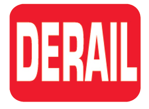 DERAIL red sign plate. White letters on a red background. Sign plates are 12-inches by 15-inches, and made of .080-inch aluminum plate with Scotch-Lite reflectorized lettering. Weight: 1.5 pounds. Product of Aldon ® Company.