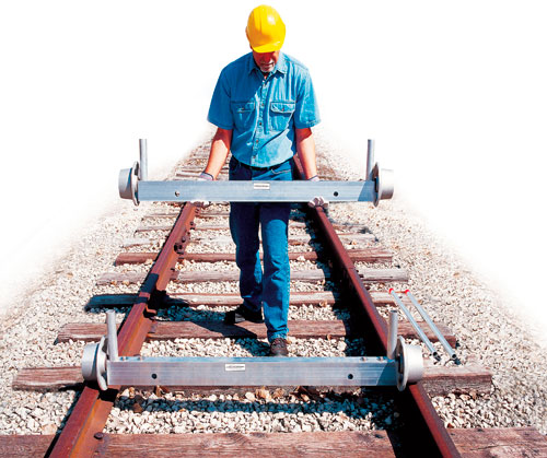 Miracle rail and tie dolly cart is made out of welded aluminum. It’s a cart of infinite length. Use two or more dollies to move long, heavy loads down track. Half the weight of steel dollies but equal in strength. Fabricated of 6063T6 alloy aluminum. Each dolly supports 2,000 pounds. Wheels are 6-inches in diameter, and aluminum insulated. 5/8-inch clearance. Dolly beam has side stake sockets and holes for passing load-strapping chains. Top surface of dolly has coarse grit stair tread tape to prevent slippage. For best performance, two workers should tow the dolly load, and always stay outside the rails. Never stand in front of the dollies. Loads should be tightly strapped to beams to prevent shifting. Use dollies on flat track only as there is no way to brake the movement on a slope. Weight: 32 pounds. Product of Aldon ® Company.