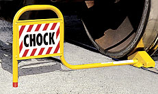Single, all steel, railroad wheel chock with replaceable rail biting spurs. Type "D" for exposed rail. Holds railcar in one...