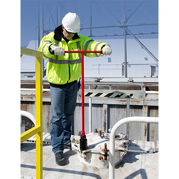 Steel T-handle wrench for tank car sockets. Useful where 200 foot/pounds or less torque is needed to loosen or tighten...