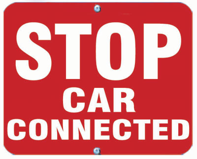 STOP CAR CONNECTED red sign plate. White letters on a red background. Sign plates are 12-inches by 15-inches, and made of .080-inch aluminum plate with Scotch-Lite reflectorized lettering. Weight: 1.5 pounds. Product of Aldon ® Company.
